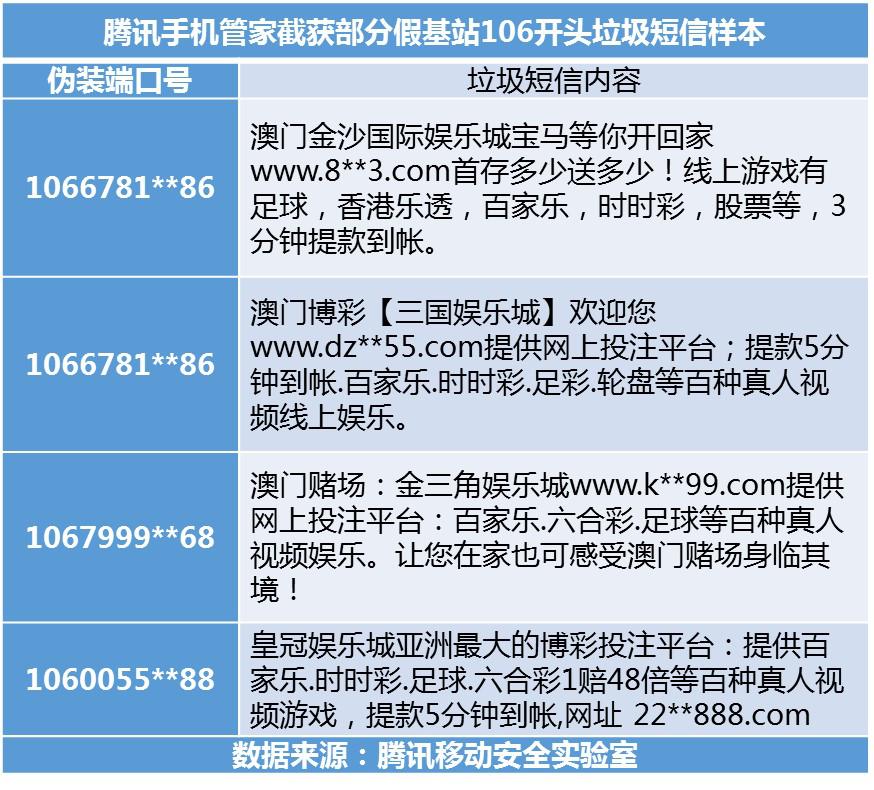 目前,全國各地手機用戶都已經發現“假基站”發來的以106開頭的詐騙短信,提醒廣大用戶謹防上當受騙。同時,建議用戶收到此類短信后,找運營商投訴,協助運營商、公安部門抓獲詐騙分子。