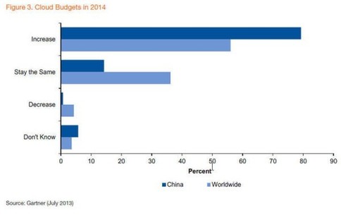 80%的中國(guó)企業(yè)計(jì)劃在2014年增加云計(jì)算預(yù)算。