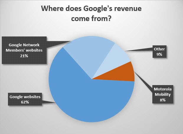 兩年前,谷歌還是一個偏科生。當時它的收入幾乎全部來自廣告。其2011年的報告里寫,“2009年我們收入的97%來自廣告,2010與2011年則有96%來自廣告?!彪S著谷歌收購摩托羅拉移動,谷歌試圖進入硬件領域,你可以看到它的收入結構有了些微的變化。不過最近它把這塊業務賣給了聯想,可能其收入結構又要回到當初?!捌渌保∣ther)類別里,主要是包括其數字內容與非摩托的硬件產品,這塊仍占公司收入的很少一部分。所以摩托羅拉移動售出后,谷歌的廣告收入又要回歸到占比90%以上的地位。