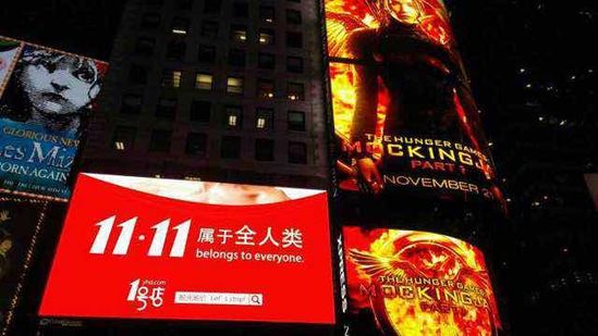這是紐約時代廣場1號店打出的雙十一廣告,從這張圖里可以看出3點:1、別小瞧1號店,人家雖沒阿里有錢,但誰家還沒兩騷錢??!2、有把雙11推廣到美國的意思;3、如果考慮之前阿里在中國封殺雙十一商標,那么人家1號店跑到美國來宣傳你總管不著吧?
