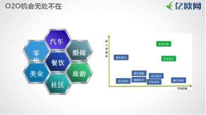 說了這么多,未來O2O還有哪些機會點?我們把線下傳統(tǒng)行業(yè)排個序就會發(fā)現(xiàn),整體來說,機票加酒店的機會幾乎已經(jīng)不存在了,因為它們的標準化低,線上滲透率本身也很高了。