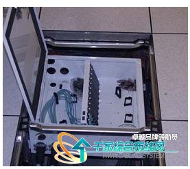 地板下,在活動地板下方安置地板盒,主干光纜通過地板盒內的配線面板,從配線面板插接跳線由地板下方設備底部進入設備內部并端接于設備的端口上,這種布線適用于下走線的布線方式,這種方式主要的優點擴容與維護較便利,也基本不受限于設備的型號與差異。缺點是相對地板安裝方式成本稍高,對下送風氣流有一定的阻礙。如圖5 所示:
