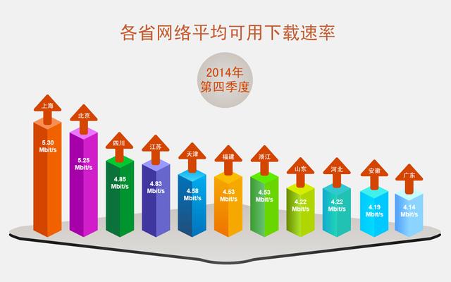 報告還稱,全國平均可用下載速率繼續保持增長態勢,比上一季度提高了0.16Mbit/s。從各省情況看,排名前3位的省市保持不變,仍是上海、北京和四川。繼續增加,新進中西部的寧夏、湖南和吉林,達到14個省市。另外,中西部省份的網速在第4季度快速提升,青海、新疆、寧夏和江西省的季度漲幅均超過9個百分點。