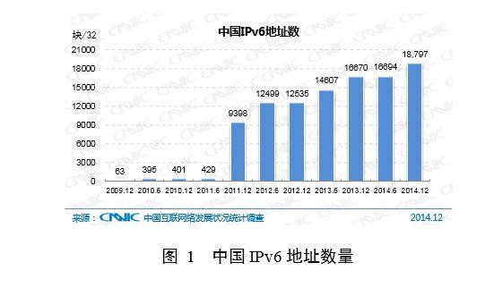 截至2014年12月,我國IPv4地址數(shù)量為3.32億,擁有IPv6地址18797塊/32。