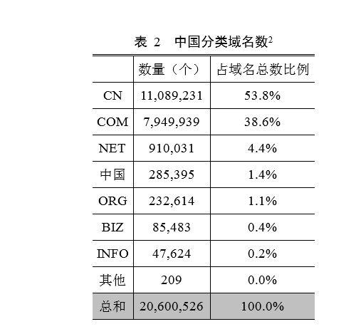 我國域名總數(shù)為2060萬個,其中“.CN”域名總數(shù)年增長為2.4%,達(dá)到1109萬,在中國域名總數(shù)中占比達(dá)53.8% 。