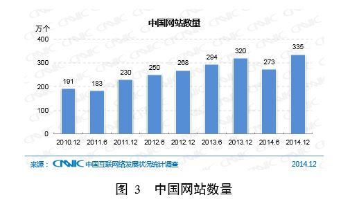 截至2014年12月,中國網(wǎng)站數(shù)量為335萬個,年增長4.6% 。