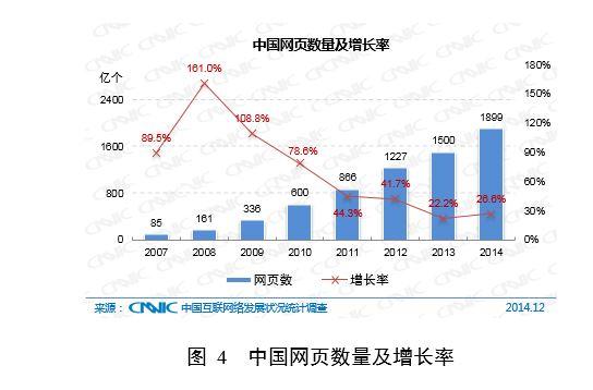 截至2014年12月,中國網(wǎng)頁數(shù)量為1899億個,年增長26.6% 。