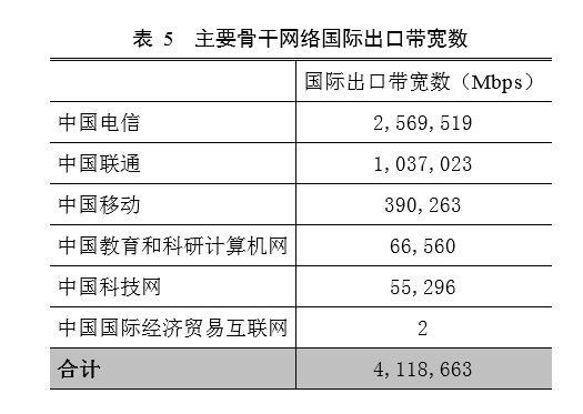 國際出口帶寬為4,118,663Mbps,年增長20.9% 。