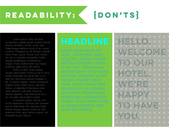 正如同上文所說,影響可讀性的影響因素很多,不過在諸多問題當中,確保可讀性的基礎(chǔ)是可讀——至少要讓人看清元素本身。在黑色的背景上采用白色的字體一般能保證可讀性,對比很明顯,但是如果字體太過于纖細,視覺上的辨識度就很低了。字體過小、色彩對比度不夠、透明度過高都會造成類似的問題,只要你發(fā)現(xiàn)難于識別,有針對性地處理即可。