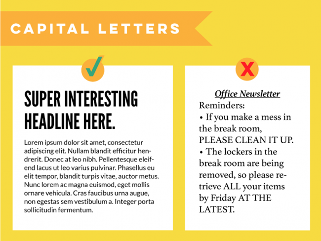 同樣,這是一個在英文情況下常見的設(shè)計誤區(qū)。在標題中全用大寫,這個沒問題,段落中如果偶有需要強調(diào)的地方用大寫也說的過去。但是在此之前,要保持約定俗成的最基本的使用習慣:標題大寫,正文小寫。