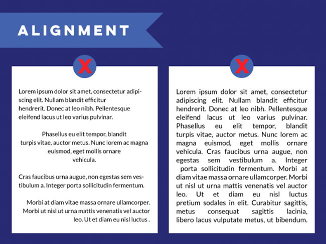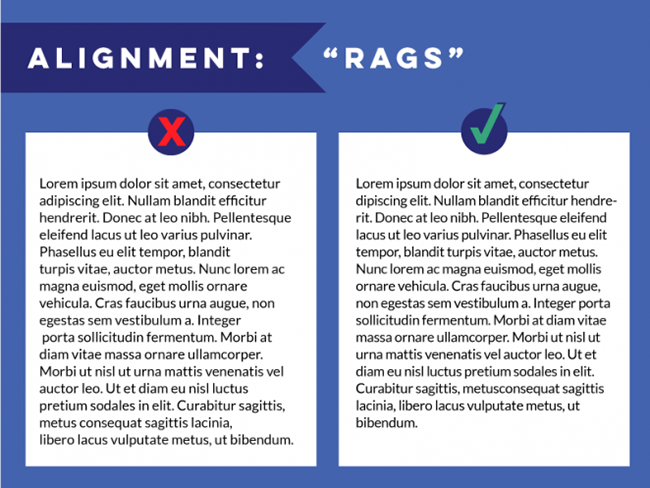 設(shè)計原則中,對齊是最重要的幾項之一。對齊會讓文字排列有序而合理,視覺上統(tǒng)一而一致。不同的對齊方式混合在一起會產(chǎn)生隨機的間距,難看且閱讀困難。