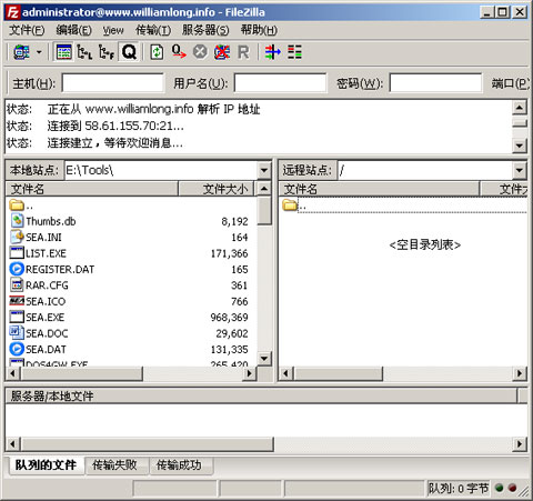 FileZilla - 將客戶端的文件上傳到服務器上,最常用的軟件就是FTP了,微軟的IIS自帶了一個簡單的FTP服務器軟件,如果覺得不好用,服務器上也可以安裝免費的FileZilla服務器軟件,客戶端可以使用免費的FileZilla Client,支持多線程上傳文件。
