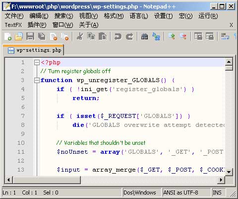 Notepad++ - Notepad++是一個免費開源的源程序代碼、HTML網頁代碼編輯工具,支持多達數十種常見源代碼或腳本的語法,包括C,C++,Java,C#,XML,HTML,PHP,Javascript,RC resource file,makefile,ASCII,doxygen,ini file,batch file,ASP ,VB/VBS,SQL,Objective-C,CSS,Pascal,Perl,Python,Lua等,功能非常強大。在服務器上安裝后可以直接修改網站上的源程序代碼。