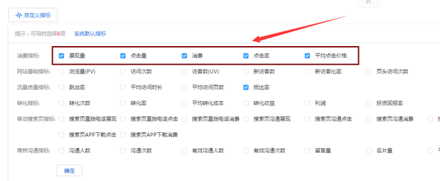 第四步:選擇消費指標中的“數據按鈕”點擊確定