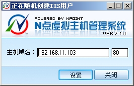 6、安裝完成后運(yùn)行桌面上的N點(diǎn)配置工具、運(yùn)行N點(diǎn)虛擬主機(jī)管理系統(tǒng)設(shè)置好您的主機(jī)域名和端口號(hào)創(chuàng)建IIS用戶(hù)