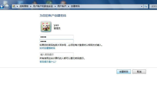 5、在文本框內輸入你要設置的密碼,然后點擊創建密碼即可。