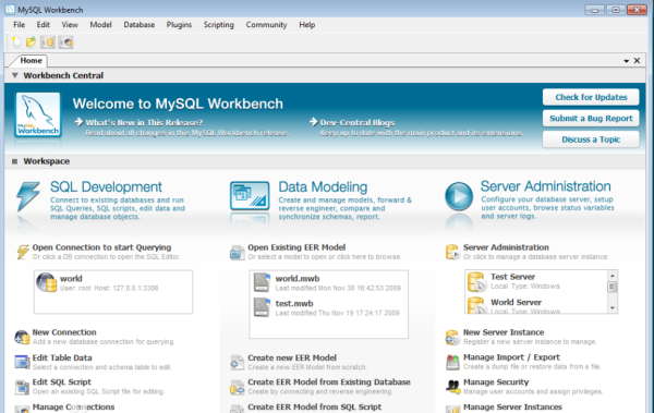 MySQL Workbench是一個(gè)統(tǒng)一的可視化開(kāi)發(fā)和管理平臺(tái),該平臺(tái)提供了許多高級(jí)工具,可支持?jǐn)?shù)據(jù)庫(kù)建模和設(shè)計(jì)、查詢(xún)開(kāi)發(fā)和測(cè)試、服務(wù)器配置和監(jiān)視、用戶(hù)和安全管理、備份和恢復(fù)自動(dòng)化、審計(jì)數(shù)據(jù)檢查以及向?qū)?qū)動(dòng)的數(shù)據(jù)庫(kù)遷移。MySQL Workbench是MySQL AB發(fā)布的可視化的數(shù)據(jù)庫(kù)設(shè)計(jì)軟件,它的前身是 FabForce 公司的 DDesigner 4。
