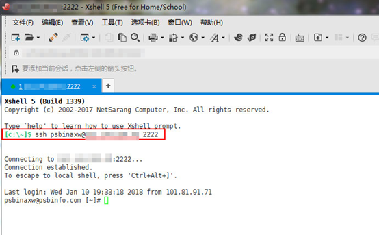 教程中的ssh工具為Xshell,登陸linux虛擬主機執行命令為:ssh--用戶名--@--IP--端口號。注:linux虛擬主機默認端口為22,如果端口為22,則端口號處不填。
