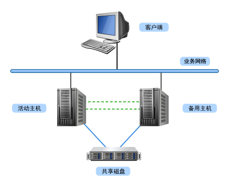 通過Rose HA系統把兩臺服務器與磁盤陣列系統相連,操作系統、應用軟件和Rose HA軟件分別安裝在兩臺服務器上,數據庫放在磁盤陣列上,而兩臺服務器通過心跳線連接。Rose HA高可用功能實現的關鍵在系統發生錯誤時進行切換,客戶端用戶并不會發現工作端有什么變化。