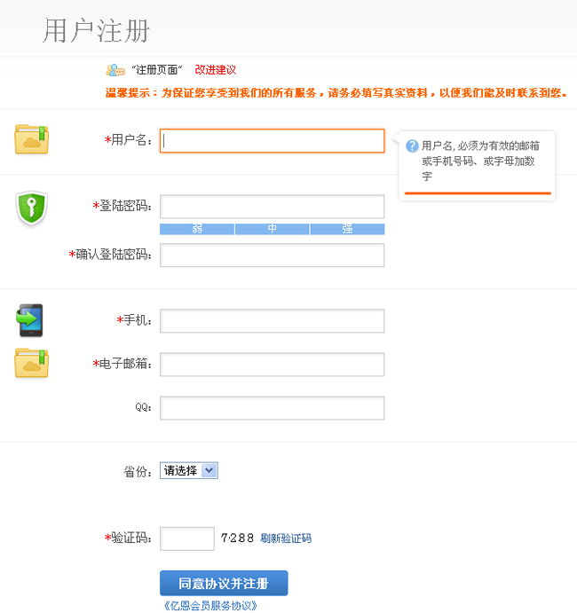 擊右上角的免費注冊,進入http://m.3cym.cn/user/register.asp頁面,來完成注冊。按照要求填寫即可。