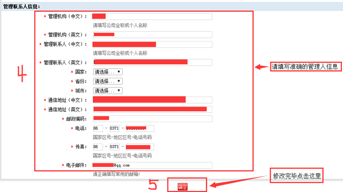 8、修改管理聯(lián)系人信息,點擊【確定】完成設(shè)置。